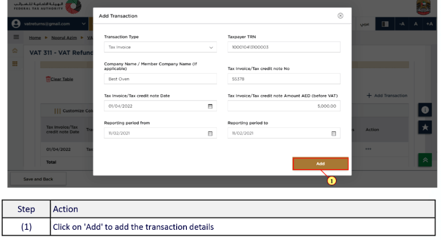 - Follow the initial steps for applying for a VAT refund on the EmaraTax dashboard up to Step